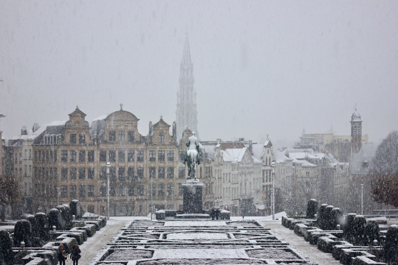 For a great view of Brussels and some lovely gardens, head on over to the Mont des Arts (Mountain of Arts). While I am sure the view is even more spectacular in spring or summer, when I visited in winter I was able to see my first snowfall of the year from this point on my last day in Belgium and it was quite impressive. Historically, this point of the city separated the aristocratic upper-class portion of the city from the working class portion.