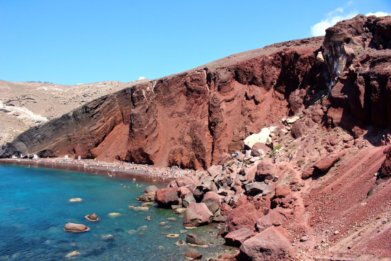 Red sand, black sand, and even a white sand beach can be found on Santorini. Spend some time exploring one (or all!) of these different types of beaches. While you may want to spend money and rent a sun bed and umbrella, many places offer lunch deals with a free sun bed. My personal favorite beach? Kamari-but maybe I’m biased because I stayed there!