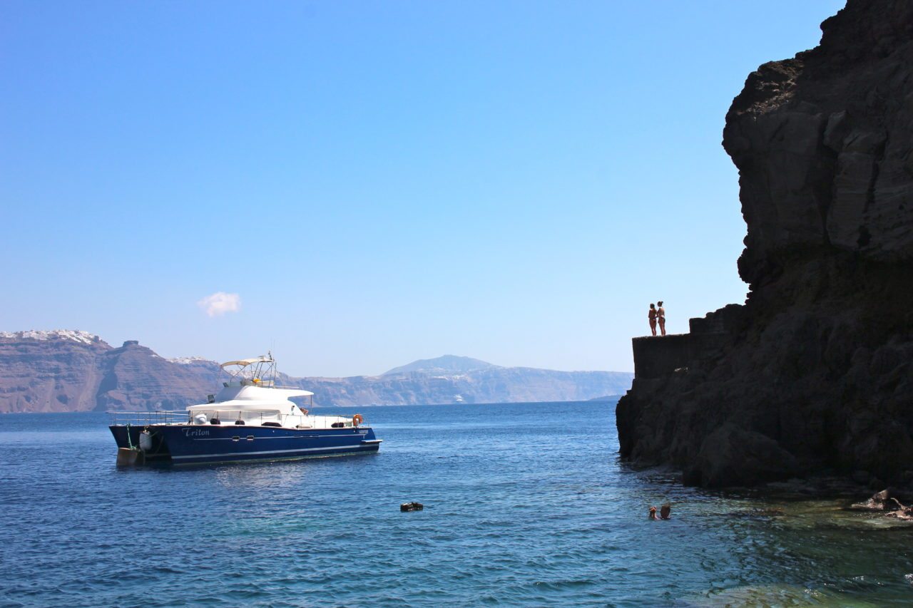 Just beneath Oia lies Ammoudi Beach, a small, lesser known beach with a rock you can swim to perfect for cliff jumping. We took our ATV down and spent a few hours swimming (with a pretty incredible view of Santorini) and jumping off rocks into the sea below (à la Sisterhood of the Traveling Pants)