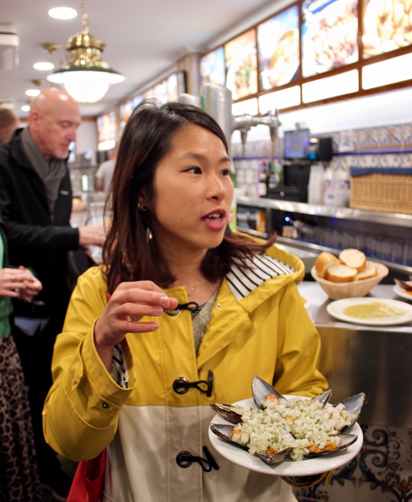 Confession: I used to be the world’s pickiest eater! Seriously, it wasn’t until I moved abroad that I began tasting and learning to love new foods. Spain is particularly known for its seafood, and back in the day, my version of seafood was a fish stick. Thankfully, I’ve reformed quite a bit from my early days, and am now a fan of seafood, particularly shellfish, which is why I was so excited by our first stop, La Mejillonera.